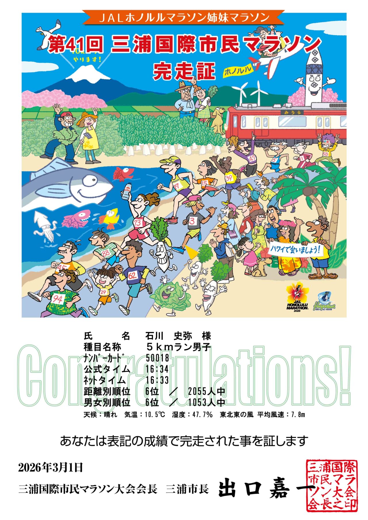 6位という結果を残したからこそ、あえて言わせていただきたいのが表彰対象の拡大です。現在は3位までですが、入賞の喜びをより多くのランナーが分かち合えるよう、ぜひ**「6位までの入賞表彰」**を検討していただければと切に願います。